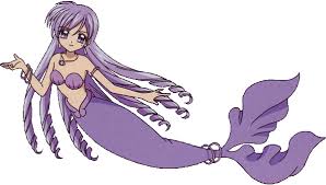 Como sirena tiene el pelo largo hasta los tobillos y también acabado en rizos y de un color violeta más claro, y los ojos violeta claro. Además lleva unos pendientes largos violetas en forma de concha alargada con líneas verticales hacia el final.